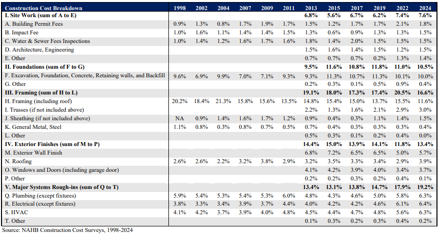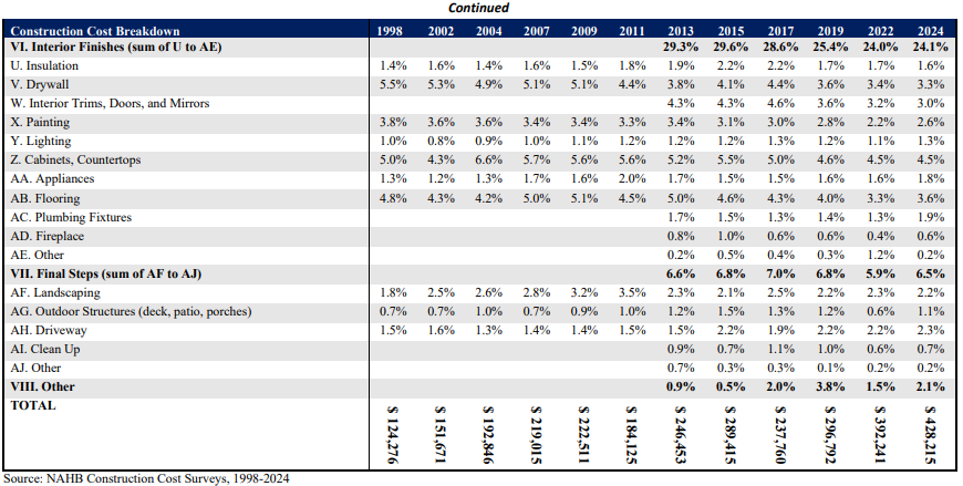 - Construction Costs – The average construction cost of a typical single-family home in 2024 is $428,215 or about $162 per square foot – the highest in the history of this series according to NAHB’s most recent Cost of Construction Survey. If the cost to build is $164 per square foot, a 2,000 sq ft home would cost $328,000.